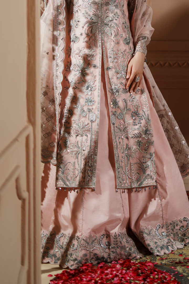A luxurious organza ensemble adorned with intricate embroidery and handwork — crafted for a truly regal festive look.