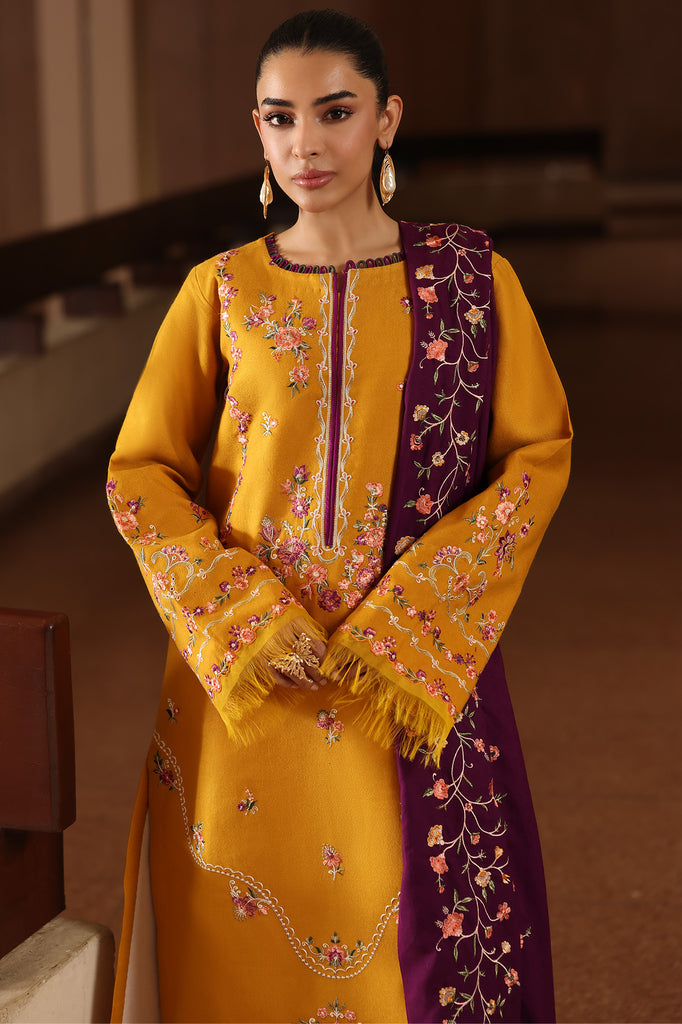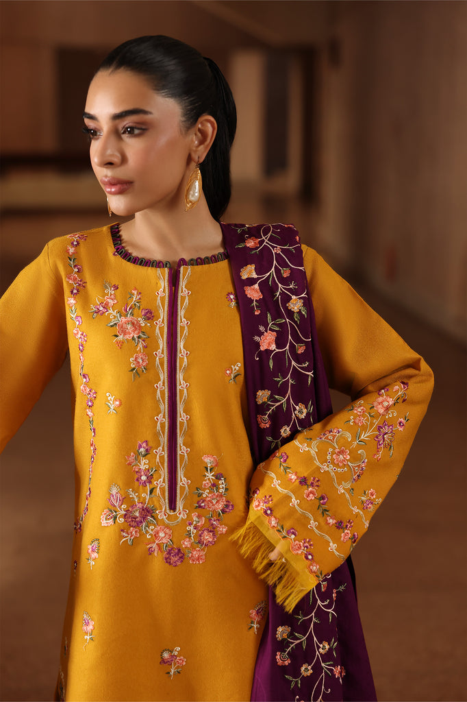 A graceful expression of timeless style, this ensemble showcases an embroidered peach front paired with embroidered sleeves, exuding sophistication and finesse. The dyed peach back offers balance to the richly detailed design, while the embroidered hem border lends a refined finishing touch. A dyed peach trouser ensures effortless elegance, perfectly complemented by a beautifully embroidered shawl, completing the look with charm and luxury.