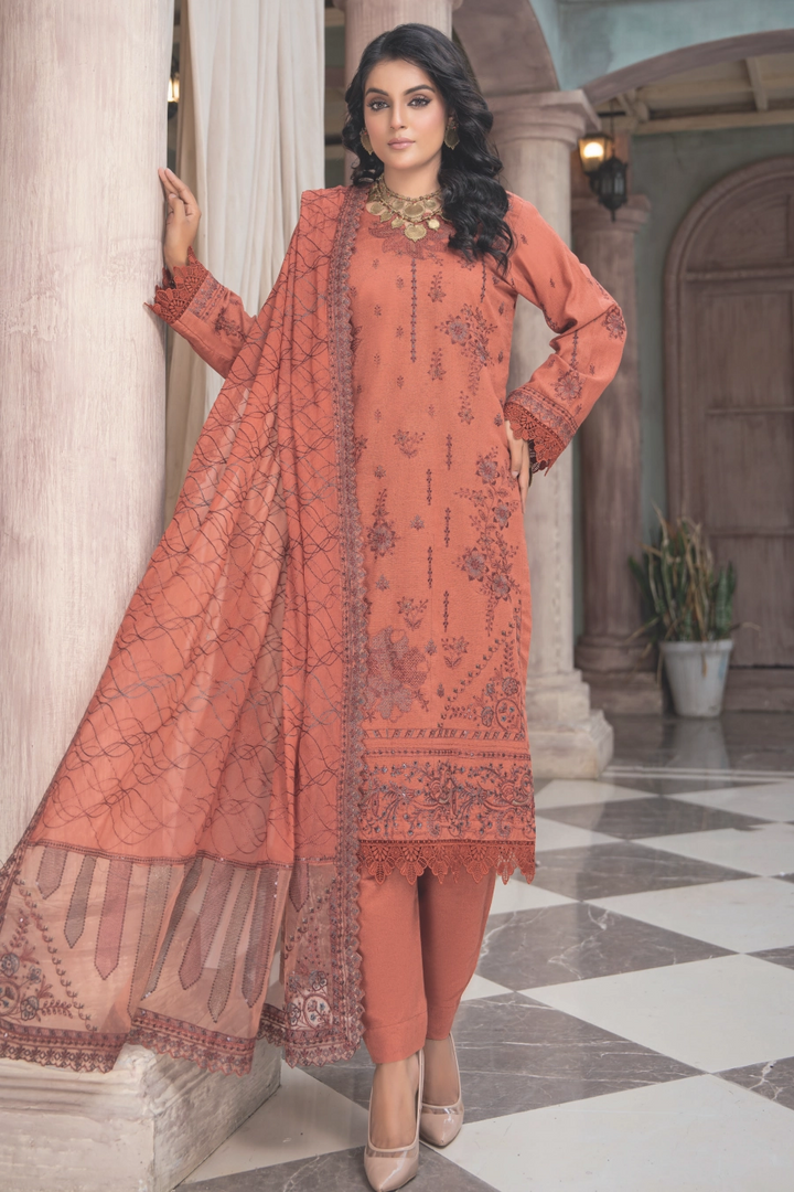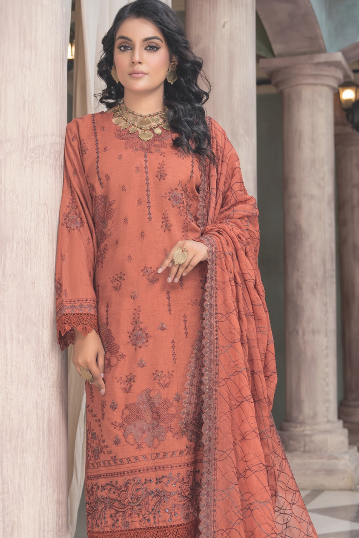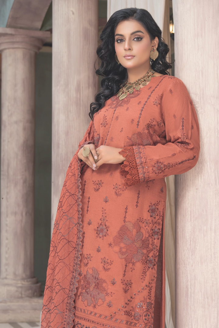 A timeless Luxury Karandi Series crafted to perfection, featuring richly embroidered Karandi shirts paired with delicately designed crinkle stitch patch dupattas. This series blends warmth, sophistication, and elegance, making it the perfect choice for graceful winter wear.