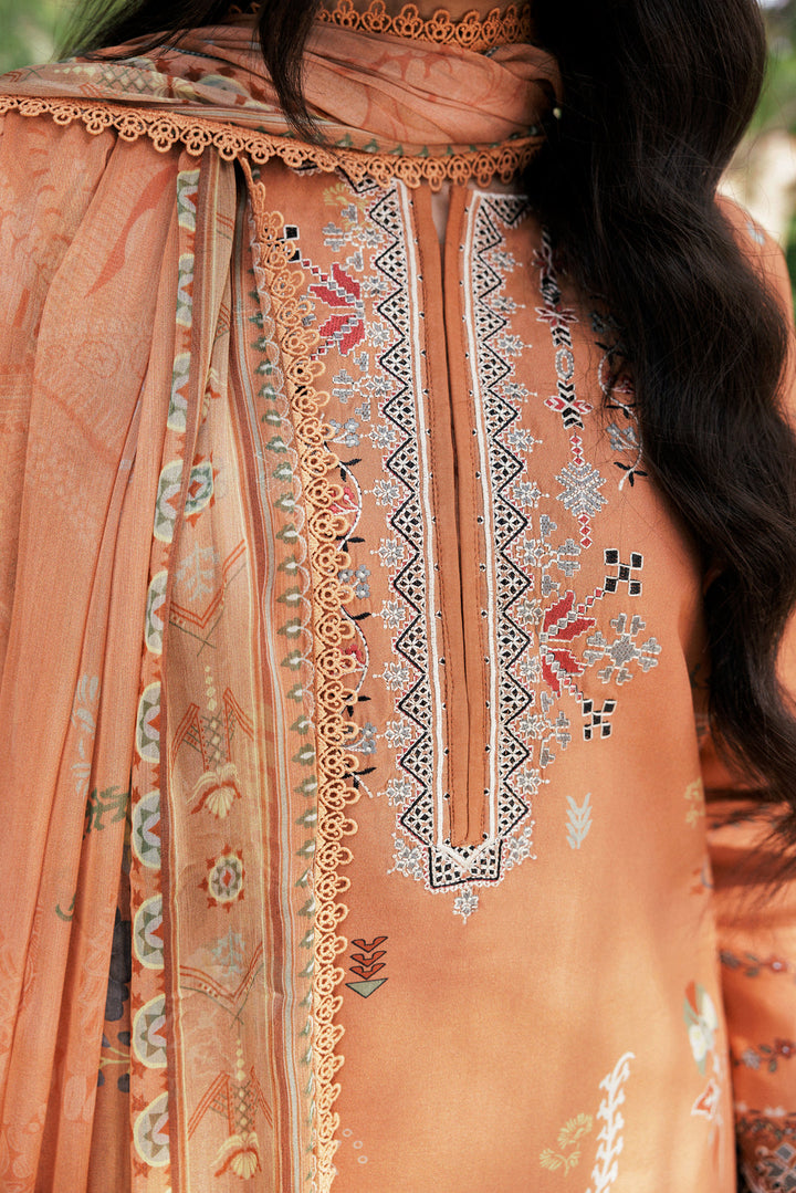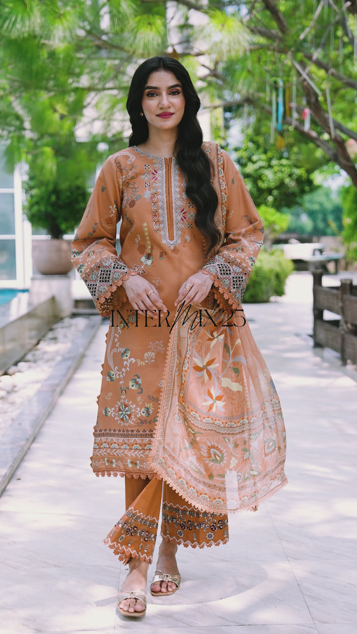 Digital printed viscose outfit with elegant embroidery and chiffon dupatta.