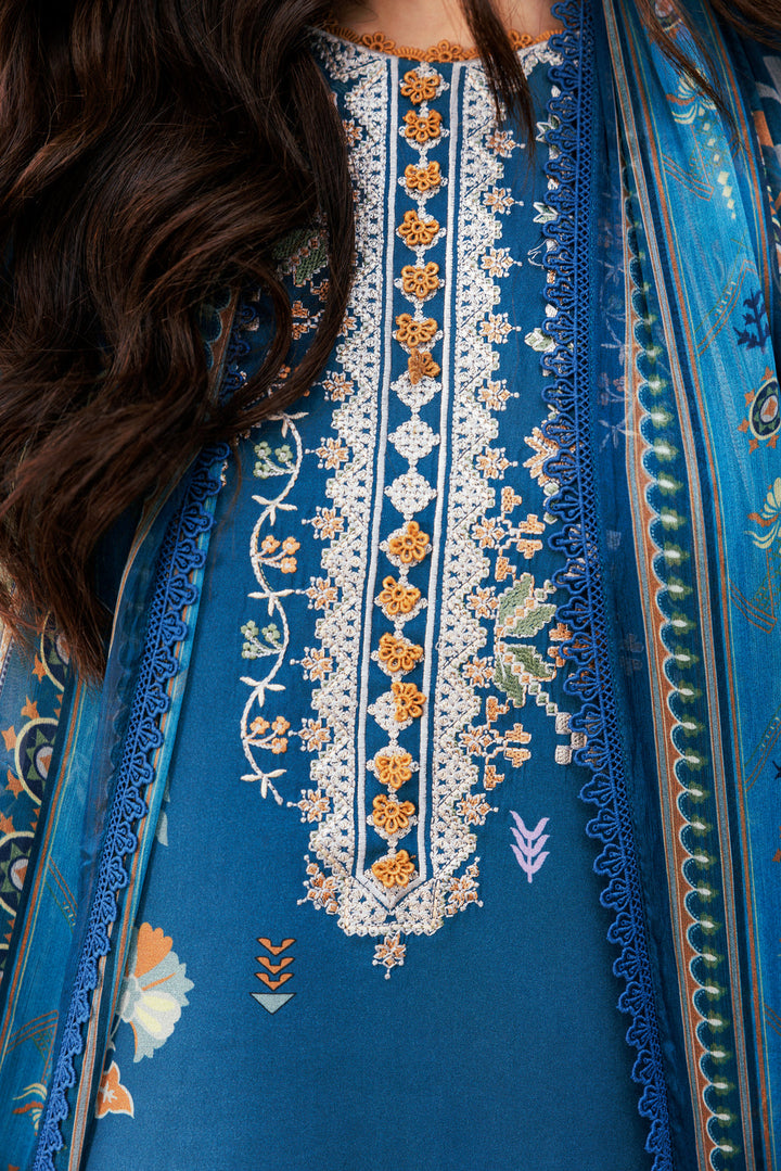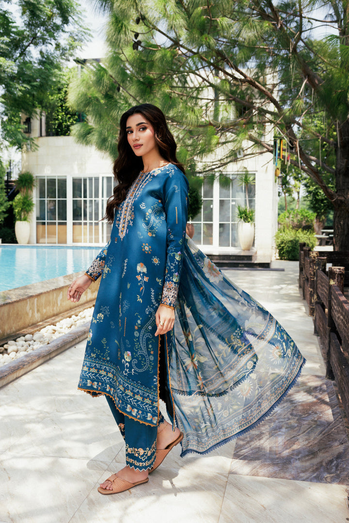 Elegant digital printed viscose suit with embroidery and chiffon dupatta.