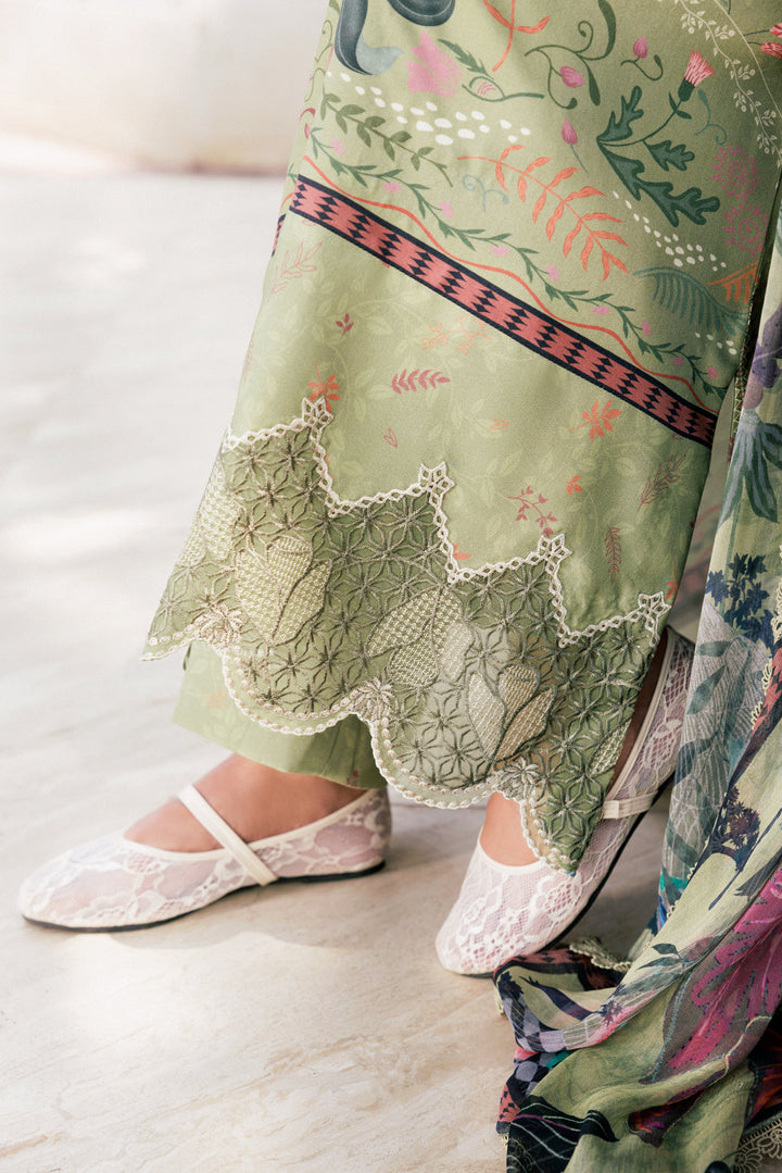 Elegant digital printed viscose suit with fine embroidery and chiffon dupatta.