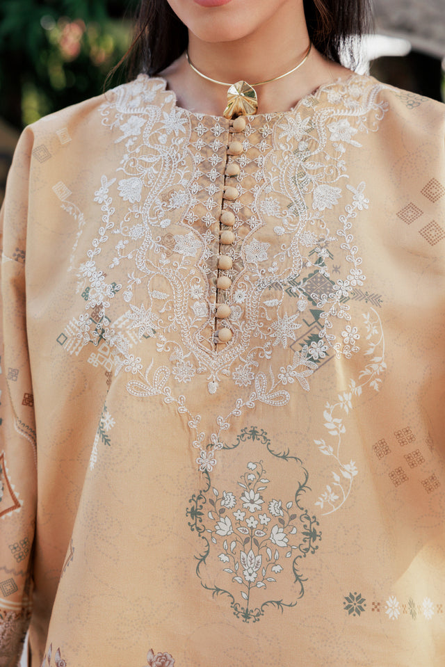 Elegant digital printed viscose suit enhanced with embroidery and paired with a soft chiffon dupatta.