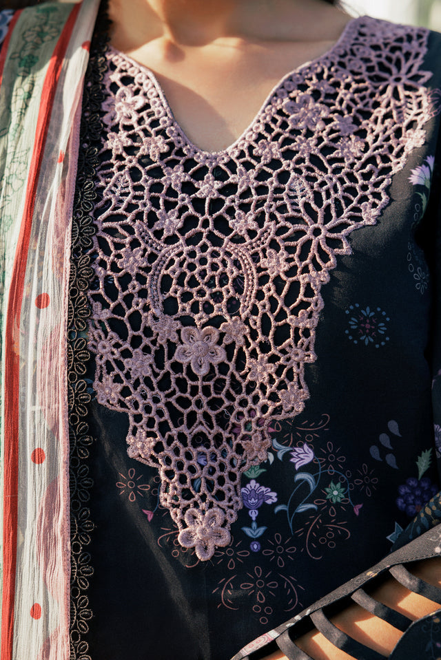 Luxury digital printed viscose with delicate embroidery, paired with a chiffon dupatta and elegant crochet neckline.