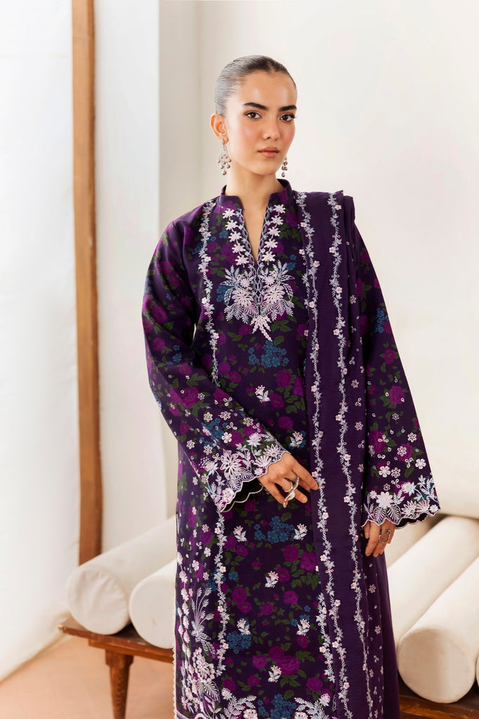 A graceful marina ensemble showcasing delicate embroidery and artistic prints on the front and sleeves. The embroidered hem lace enhances its refined elegance, while the beautifully embroidered shawl adds a touch of luxury — making it a perfect choice for sophisticated winter occasions.