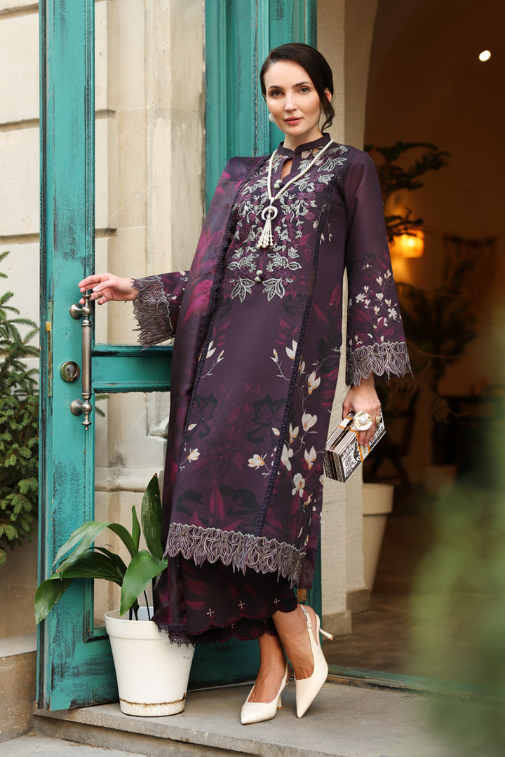 A premium winter ensemble featuring intricate embroidery on luxurious organza, complemented by a beautifully printed khaddar shirt and trouser. The soft herringbone shawl adds warmth and elegance, making it a perfect choice for the season.