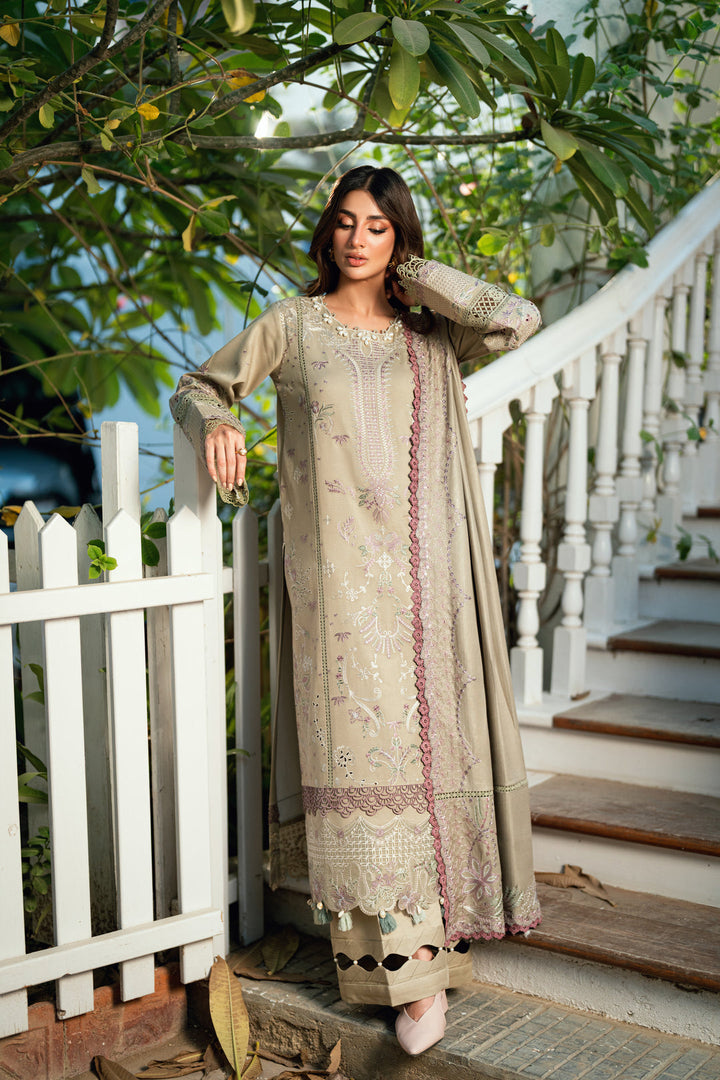 A sophisticated Dobby ensemble showcasing elegant embroidery on the front and sleeves. The beautifully detailed embroidered borders add refinement to the shirt and shawl, creating a graceful winter look. Completed with a warm embroidered wool shawl and matching dyed trouser for timeless appeal.
