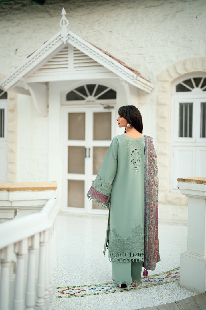 An elegant winter ensemble crafted on premium Karandi fabric, beautifully adorned with intricate embroidery on the front, back, and sleeves. The embroidered borders add refined charm, while the digital printed pure wool shawl introduces warmth and sophistication — perfect for a graceful seasonal look.