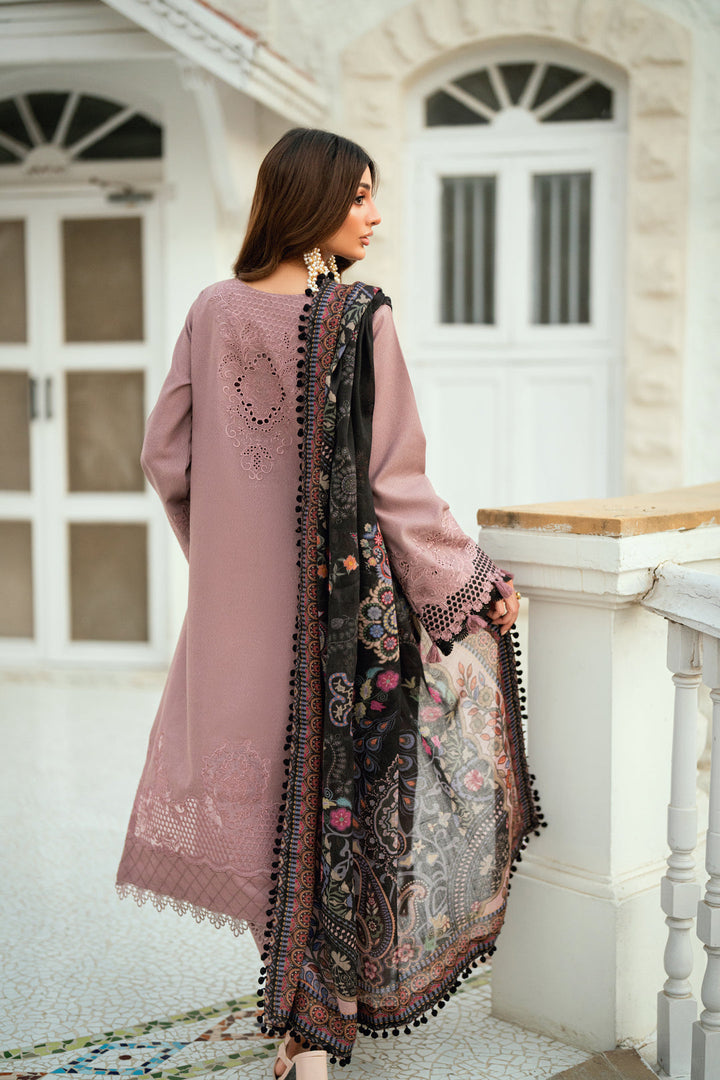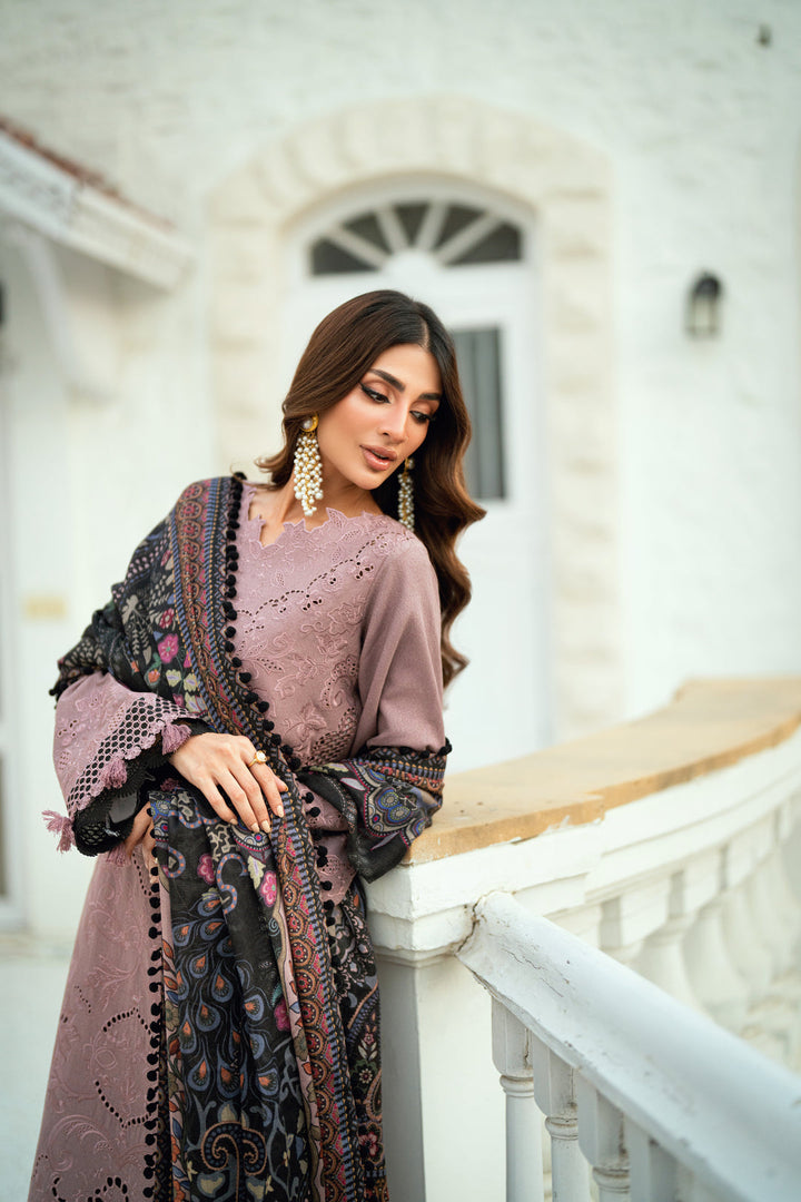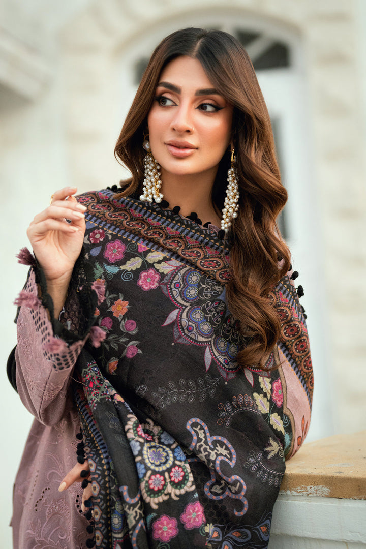 An elegant winter ensemble crafted on premium Karandi fabric, beautifully adorned with intricate embroidery on the front, back, and sleeves. The embroidered borders add refined charm, while the digital printed pure wool shawl introduces warmth and sophistication — perfect for a graceful seasonal look.
