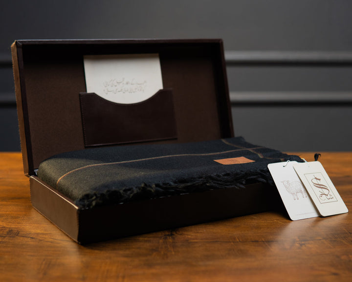 Crafted from 100% hand-picked lambswool fibers for unmatched softness and warmth• Handwoven on traditional khaddi, preserving the art of heritage weaving.• Each piece reflects hours of meticulous craftsmanship and attention to detail• Natural texture and timeless elegance, designed to elevate your winter wardrobe• Presented in a handcrafted brown leather box, making it a perfect keepsake or gift• A blend of heritage, luxury, and modern refinement — made to be cherished for years