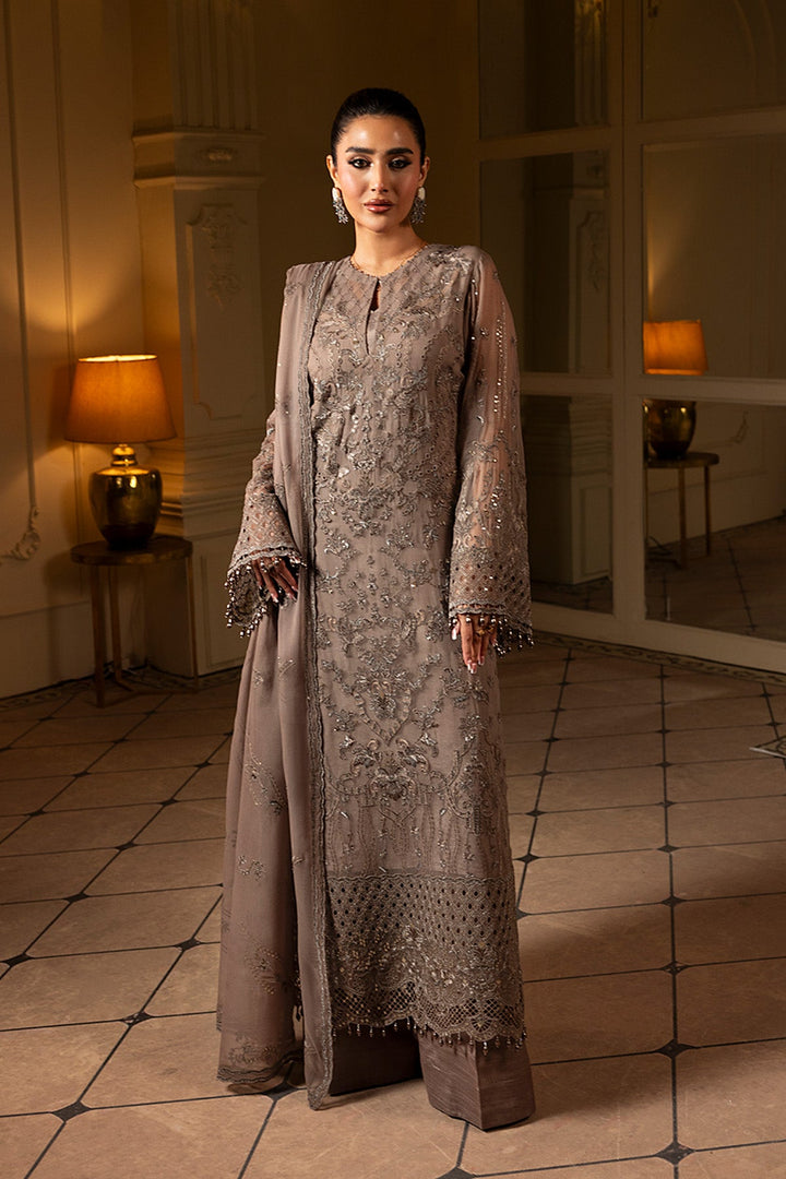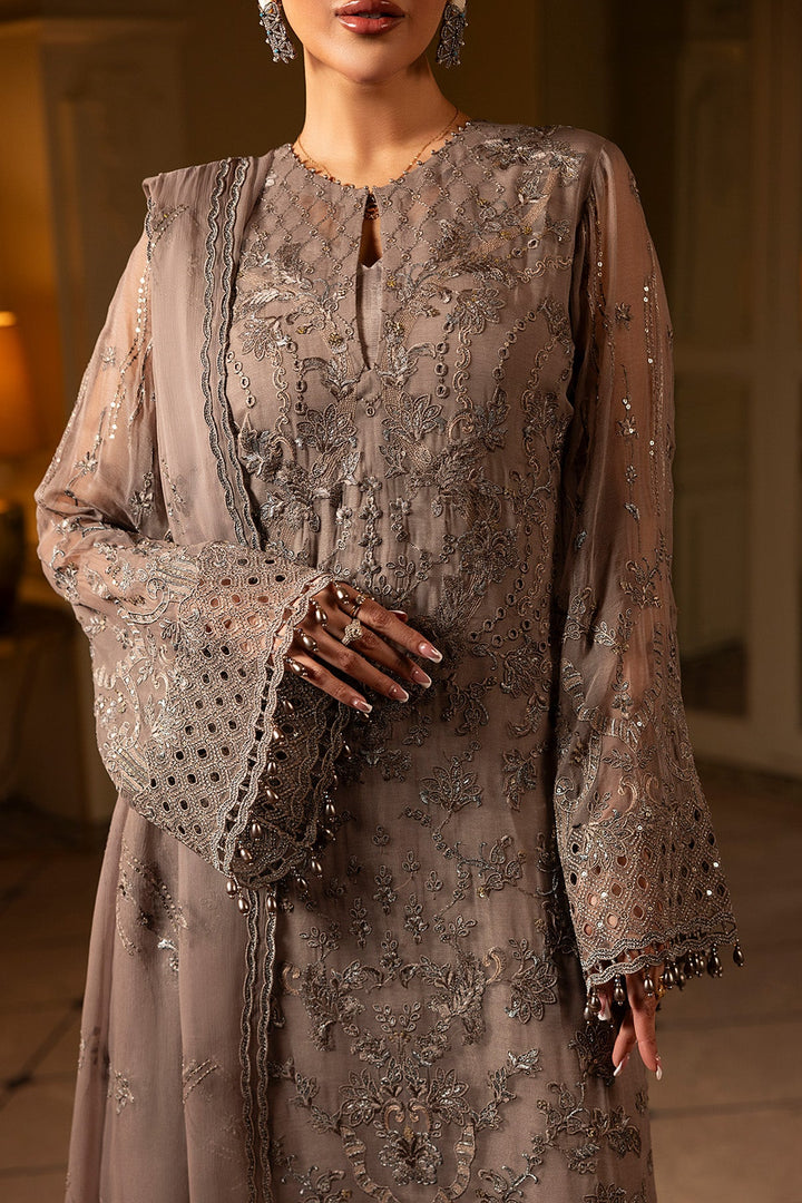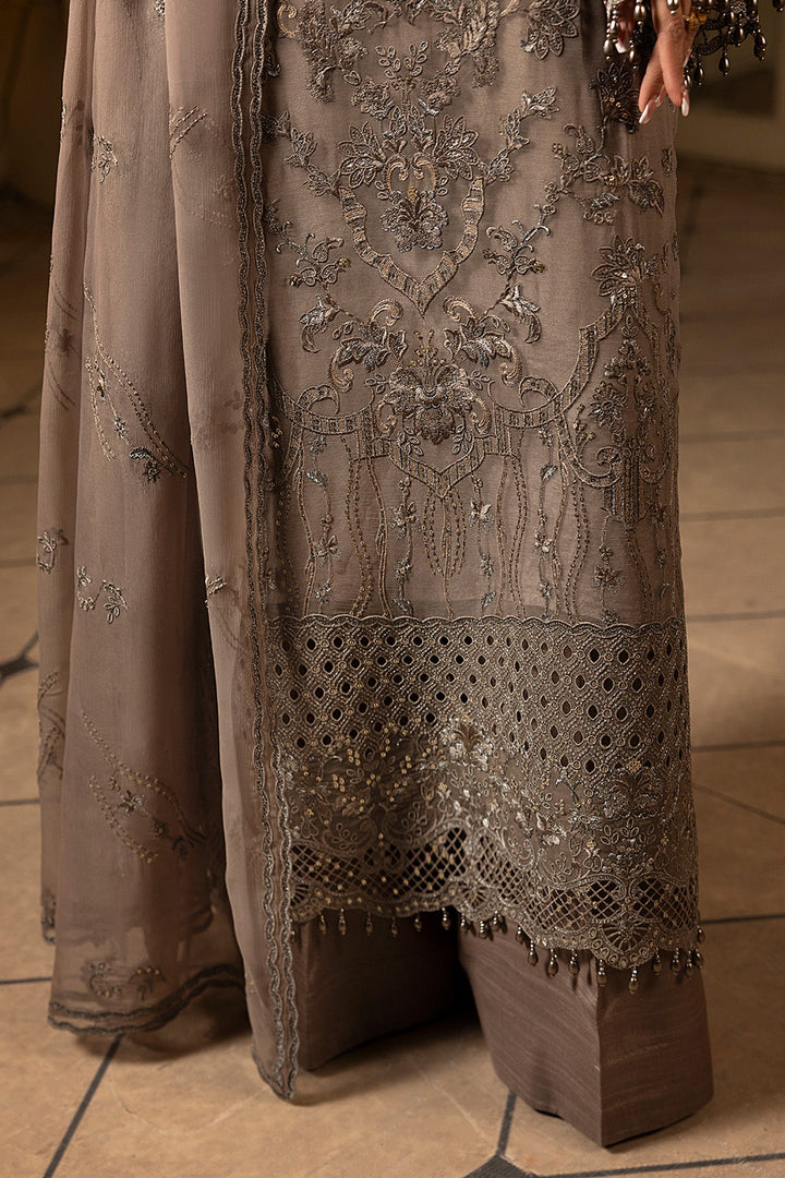 A delicate chiffon ensemble featuring intricate embroidery and organza borders — perfect for a sophisticated festive look.