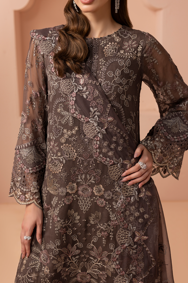 A beautifully crafted chiffon ensemble featuring delicate embroidery and elegant finishing details — perfect for formal and festive wear.